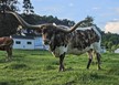 This heifer is pushing some serious horizontal horn for her age. Sired by Spokesman she's starting to get the spots and speckling that was expected as she aged. She was bred to Real Jam for a 2022 calf.